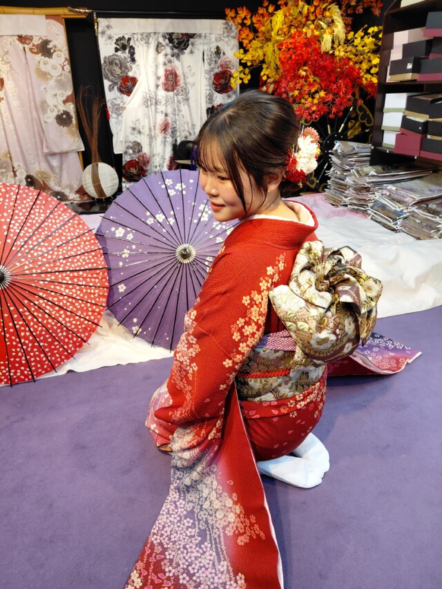 20251009 存在感アリアリ🌸✨️ みんなのコーデ 存在感たっぷり120%✨️ 本日ご紹介のお嬢様は板柳在住のI様、県外の学生さんです。振り袖はどちらかと言えば赤系を好んでたとか笑顔が印象的でとても明るいお嬢様です❗ズバリお似合い… READ MORE