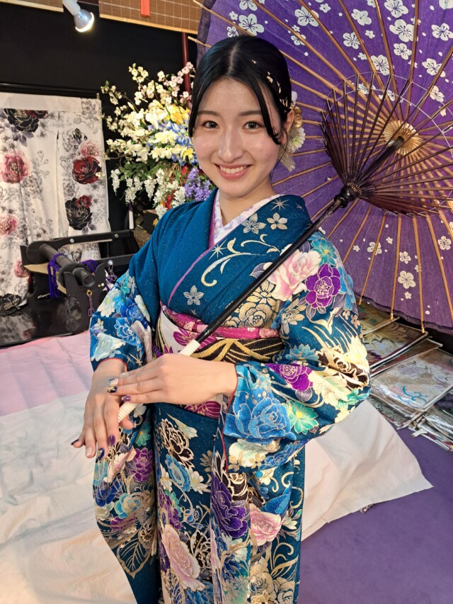 20251019 可憐で華やかに✨️ みんなのコーデ ワンランク上へと演出✨️ 本日ご紹介のお嬢様は鶴田町在住のY様、県外の学生さんです。地色が濃いめのターコイズブルーに豪華絢爛なモダンな華々を散らしたインパクト120%越えのデザインです!言わば… READ MORE