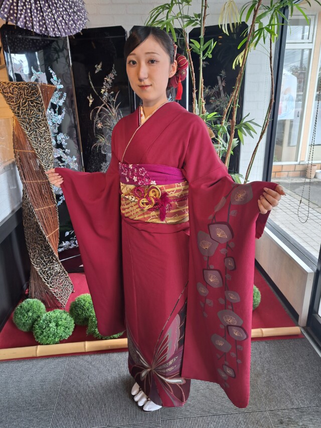 20251009 この色が大好き😆💕 みんなのコーデ この地色に惚れちゃいました😍 本日ご紹介のお嬢様は、つがる市在住のK様、県外の学生さんです。高校生の頃からお店に何度も脚を運んで戴きました😊感謝です!一枚一枚また一枚と振り袖に袖を通す度に😍これも良い✨️これもステキ✨️と迷った末の一枚をGET❗決め手は大好きな地色だったようです😊