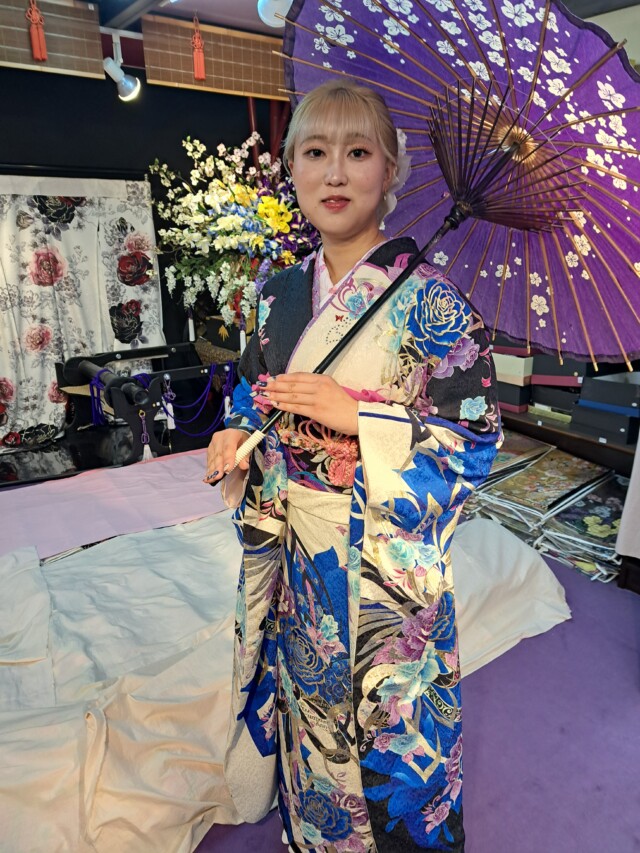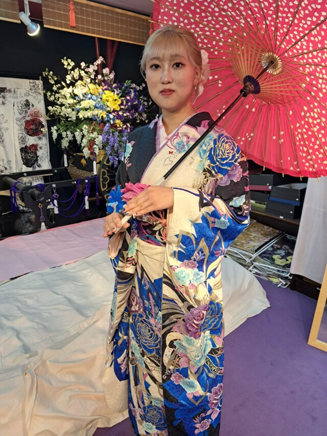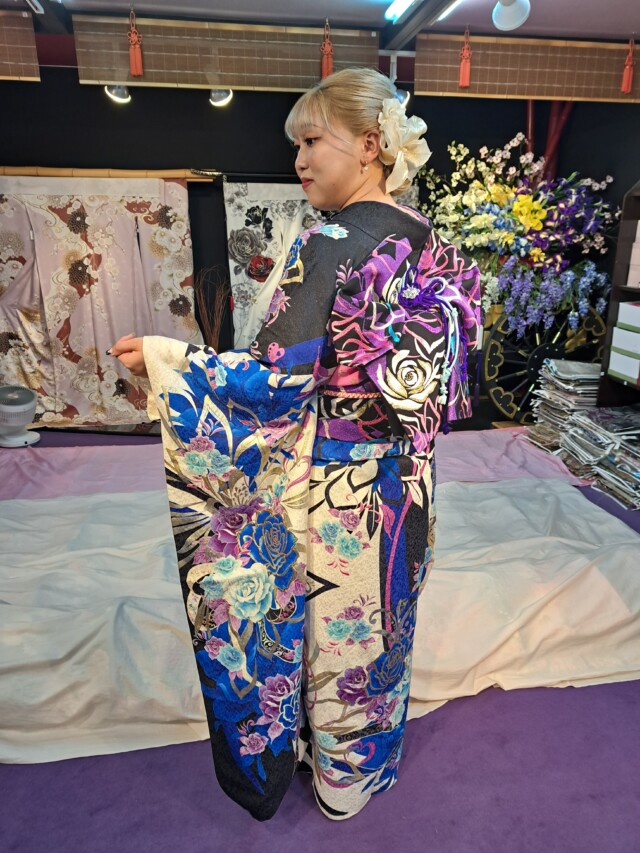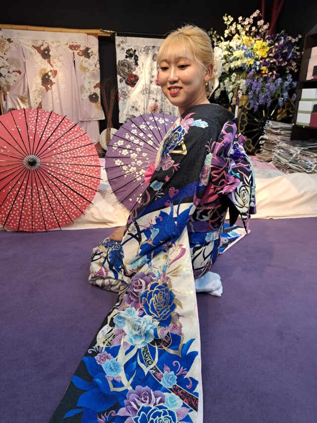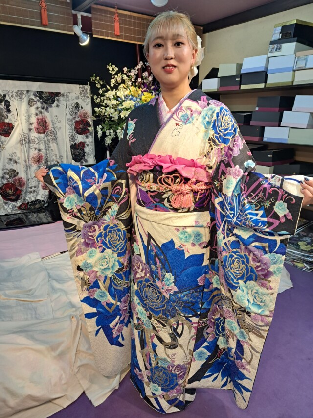 20251009 この一枚に一目惚れ😵💘 みんなのコーデ 😆満場一致「これが良い✨️」 本日ご紹介のお嬢様は、つがる市在住のK様、県内の学生さんです。選んだ振り袖に袖を通して帯を絞め各々パーツを添えていく度に最初は緊張したお顔も段々と笑顔に……😊
