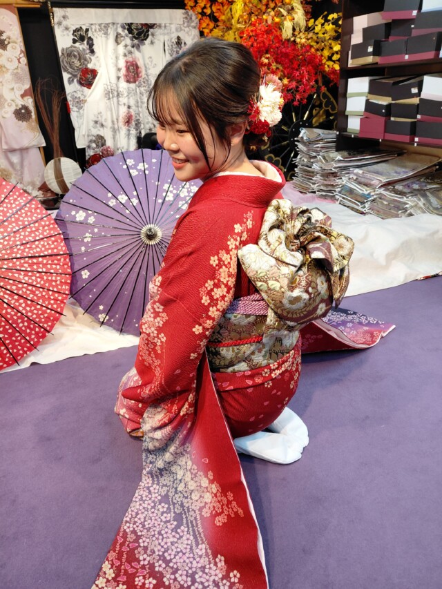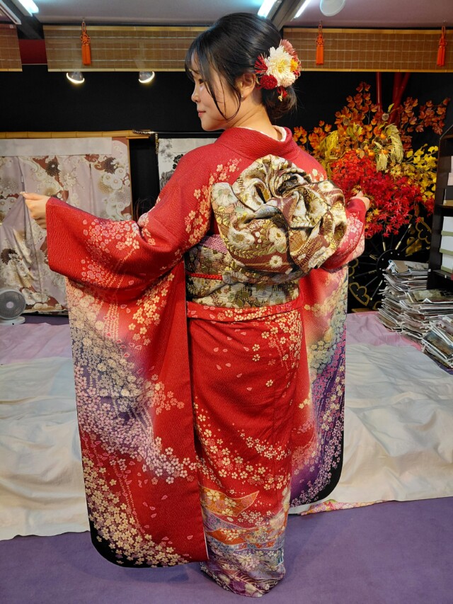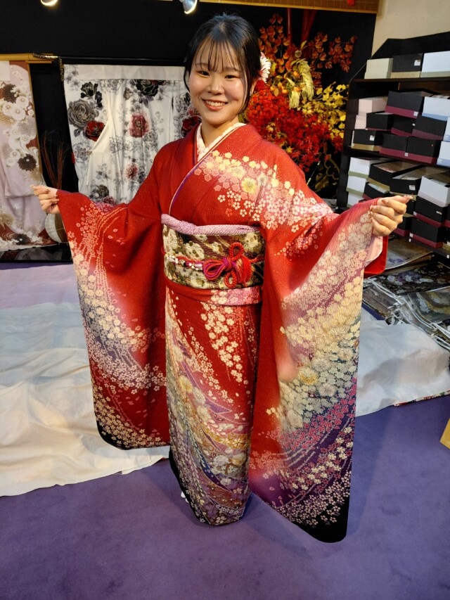 20251019 舞姫の如く✨️ みんなのコーデ 伝統美を纏う✨️ 本日ご紹介のお嬢様は五所川原市在住のO様、県外の学生さんです。伝統は、古い事の繰り返しではなくて、新しい発見の積み重ね。だからこそ今この瞬間が旬なのかと思います。御召しになられてる振り袖は長い歴史が選びに選び抜いて届けてくれた「振り袖(絞り)」です、時間が磨いてくれた高級な贈り物ですね✨️何よりお嬢様の極上の笑顔が素敵です😊