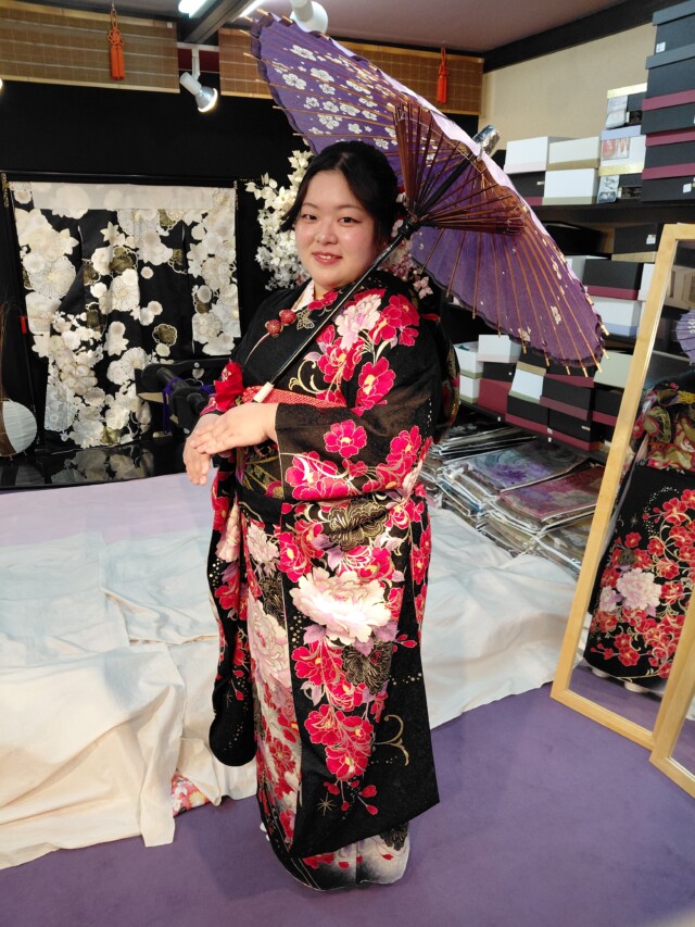 20251213 インパクト120%✨️ みんなのコーデ 伝統美とコラボ✨️ 本日ご紹介のお嬢様は五所川原市在住のW様、県内の学生さんです。ご着用のお着物は振り袖の王道をいく黒地に真紅の色柄と20才の感性が素敵に響き合う存在感たっぷりのデザインです!… READ MORE