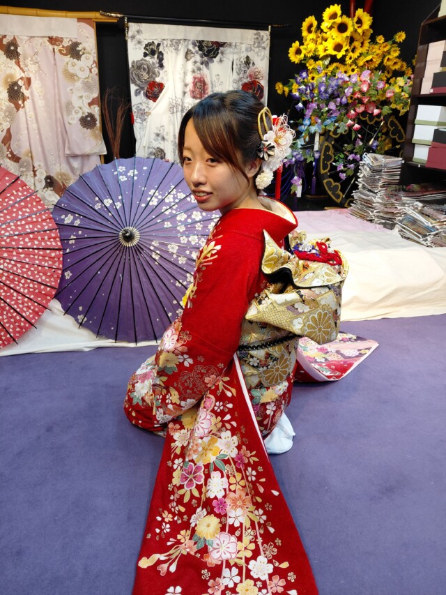 20251009 この一枚に一目惚れ😵💘 みんなのコーデ 😆満場一致「これが良い✨️」 本日ご紹介のお嬢様は、つがる市在住のK様、県内の学生さんです。選んだ振り袖に袖を通して帯を絞め各々パーツを添えていく度に最初は緊張したお顔も段々と… READ MORE