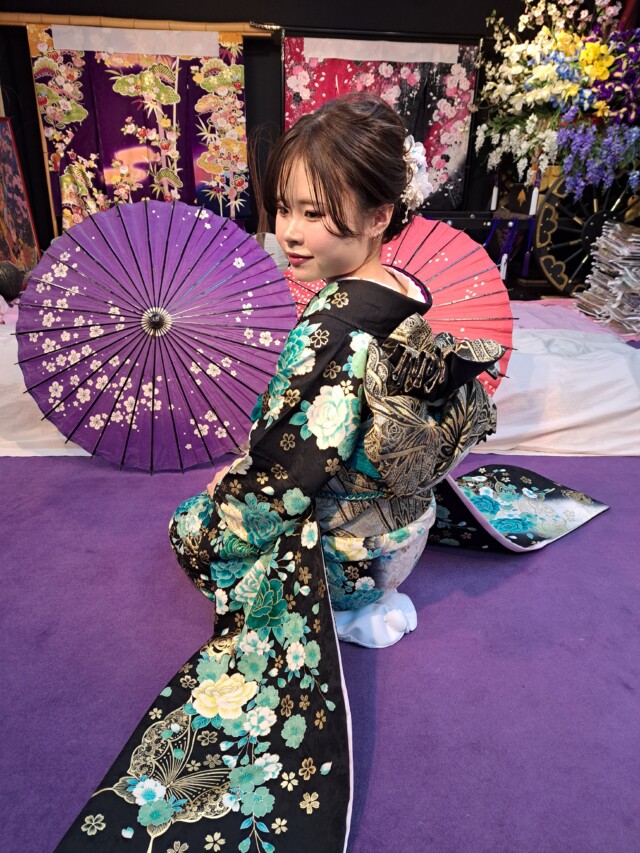 20251009 眩い程のエメラルドグリーン✨️ みんなのコーデ ✨️宝飾乱舞✨️ 本日ご紹介のお嬢様は、つがる市在住のI様、県内の学生さんです。黒地にエメラルドグリーンの花×華を施した👘振り袖は、まる… READ MORE